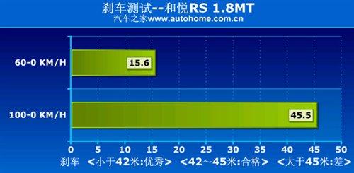 和悅RS全系車(chē)型只有一種動(dòng)力組合,來(lái)自東安動(dòng)力的4G93 1.8L發(fā)動(dòng)機(jī)搭配5檔手動(dòng)變速箱,這樣的組合技術(shù)上并不先進(jìn),但是實(shí)際測(cè)試時(shí)0-100km/h 11.8秒的加速成績(jī)還是比較令人滿(mǎn)意的。而配有四輪盤(pán)剎的剎車(chē)系統(tǒng)卻表現(xiàn)不佳,100-0km/h的平均剎車(chē)距離僅為45.5米,這樣的成績(jī)肯定不能令人滿(mǎn)意。