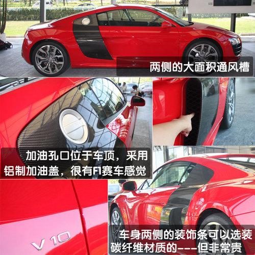 在車門后方,在輪拱和車頂之間,配有寬大的葉面?zhèn)瓤諝膺M氣口,為V10發(fā)動機的進氣及冷卻提供足夠的風量。側(cè)邊風葉的漆面效果與車身的顏色配合得天衣無縫,當然如果你有特別的需求和足夠的金錢,也可以把普通材料更換為碳纖維材料而那一定會很酷!此外,例如朱鷺白、幻影黑以及珠光效果等8種個性顏色,都是R8的可選外觀色彩。