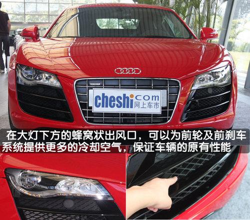 奧迪R8的駕駛艙相對靠前,而在駕駛艙之后則是巨大的引擎室——這是典型中置發(fā)動機賽車的特征,這種設(shè)計也大大優(yōu)化了車身前后比例,使R8的前后重量分達到了44:56。透過R8后方透明的發(fā)動機罩,V10 5.2升FSI發(fā)動機安靜的伏臥其中。在設(shè)計師所營造的視覺效果下,人們很容易把它與賽車聯(lián)系在一起。即便在一個不了解賽車的人面前,也一定能從中看出它的與眾不同和獨一無二。