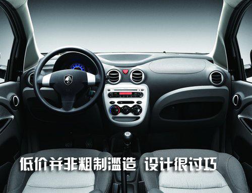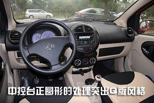 奔奔mini的中控臺(tái)設(shè)計(jì)與前兩款車型有所不同,與前者相比面積利用率更大,各部件的擺放位置也更合理耐看。中控臺(tái)面板為一微微凸出平面,輔以銀色涂裝,具有上佳的人機(jī)工程學(xué)設(shè)計(jì);空調(diào)出風(fēng)口是四個(gè)可完全關(guān)閉的原型狀;副駕駛前方手套箱由抽屜式變成開放式;門壁板手枕加寬,更便于使用。
