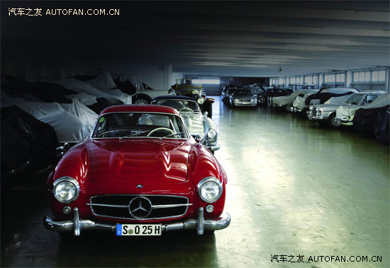 即使是專門的汽車記者,也極少有機會獲準來這里參觀。在斯圖加特一處很不起眼的倉庫群中,有幾個白色的庫房,白色的小門外沒有任何標識,如果僅是路過,你永遠無法獲知這里面竟然藏著價值連城的寶貝——奔馳公司最心肝的275輛老車。即使停在倉庫里,它們也不會像奔馳博物館里那些光鮮亮麗的展車一樣奪目,而是被罩上了車衣,雪藏到底。它們是什么車?奔馳究竟為什么這樣對待它們?