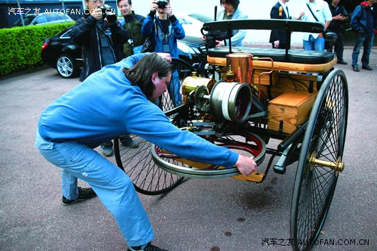 試乘完畢,漏的油似乎比用掉的多。這輛復(fù)制車還算精細(xì),不知道120年前的奔馳1號是不是也這樣遺灑?盡管如此,“不用馬拉的車”也值得我們肅然起敬了