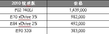 寶馬“悅世版”四款車型分別是740Li、X5 xDrive35i、X1 xDrive25i及320i,每款車型限量供應(yīng)188-588輛不等,總計(jì)1244輛,從7月中旬開始銷售。四款“悅世版”車型通過個(gè)性化定制提供各自專有的顏色、設(shè)計(jì)或裝備,共同之處是全部使用了何鏡堂先生設(shè)計(jì)的“中國印”作為主標(biāo)識(shí),“它把中國館的造型很濃縮地抽象地表示出來,通過白和紅的搭配和文字‘二0一0’形成一種很有中國韻味的一個(gè)圖章!