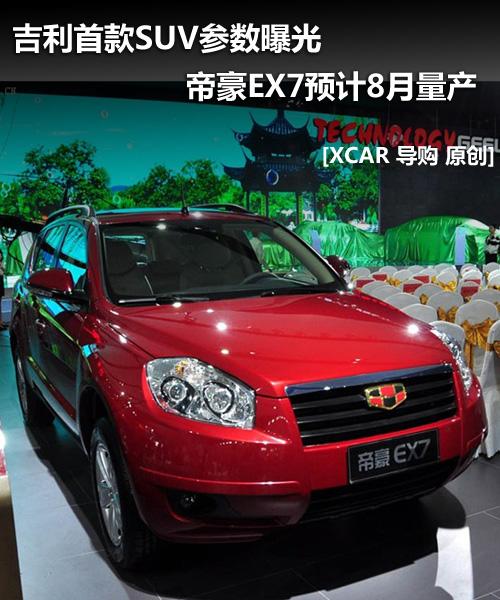 吉利首款SUV車型在2009年的上海車展上亮相,而在2010年的北京車展上,該車型正式定名為帝豪EX7,同時車型的樣式也最終確定。
