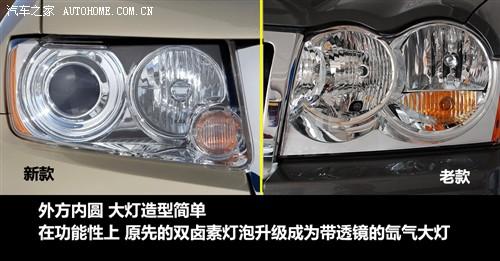 新款大切大燈外方內(nèi)圓,造型很簡單,與前臉的造型風(fēng)格貼切;在功能性上,由原先的雙鹵素?zé)襞萆墳楦鼜?qiáng)的透鏡氙氣大燈。