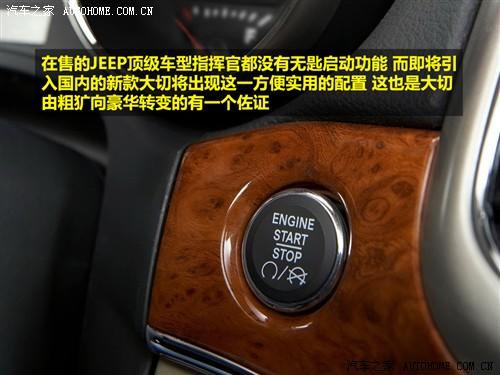 在轉向柱附近我們看到了無匙啟動按鈕,目前在售的JEEP頂級車型指揮官都沒有此功能,也許是為了追求JEEP一貫的越野復古風格,而現(xiàn)今的2011款大切將出現(xiàn)無匙啟動,確實是一個方便實用的配置。