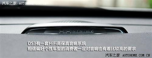 中控面板選用紅酒紅的烤漆材質(zhì)面板作為裝飾,并非我們常見的金屬拉絲或碳纖維,相信大多數(shù)人都會覺得時尚個性,但是多想一步的話,烤漆材質(zhì)抗沖擊的能力不是很強(qiáng),在車內(nèi)難免磕碰。儀表臺上HiFi system的標(biāo)識告訴我們DS3有一套高保真音響,一般個性車的消費(fèi)者對音響都有著較高要求,不知道這套設(shè)備能否讓車主滿意。