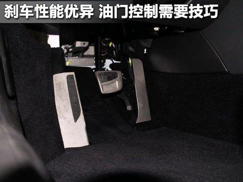 蘭博基尼GallardoLP 550-2剎車油門踏板采用鋁合金設(shè)計,帶防滑墊非常的人性化,只是感覺踏板區(qū)域有效狹窄。蘭博基尼Gallardo LP 550-2的制動性能非常出色,油門力度則有沉重。