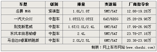 在國內(nèi)汽車市場(chǎng)中,最先開創(chuàng)轎跑車概念是馬自達(dá)6轎跑版,它的引進(jìn)過程讓國人第一次感受到了4門轎跑車的獨(dú)特魅力,同時(shí)也得到了很好的市場(chǎng)反應(yīng)。在之后的一段時(shí)間中,合資汽車廠商紛紛推出類似車型,例如別克換代新君威、東風(fēng)本田思鉑銳、以及剛剛上市的大眾CC。除此以外,自主企業(yè)上海汽車名爵品牌也推出了MG6車型,雖然定位為緊湊級(jí)別車型,但4門掀背的設(shè)計(jì)讓、2705mm的長(zhǎng)軸距它也理所當(dāng)然的被列入了轎跑車的行列。