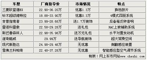 今天我們?yōu)榇蠹規(guī)?lái)了8款SUV車型,它們的售價(jià)區(qū)間都在20-30萬(wàn)左右,與部分國(guó)產(chǎn)加價(jià)SUV處于同一價(jià)格區(qū)間,姑且不說(shuō)它們的市場(chǎng)有多大,單憑它們都是純進(jìn)口這一項(xiàng)就表露出明顯的優(yōu)勢(shì)。況且,它們還有一個(gè)更為有利的優(yōu)勢(shì),就是不加價(jià)!作為汽車銷量的直接影響者,我們首先就不能讓加價(jià)這種“潛規(guī)則”有生存的機(jī)會(huì)。