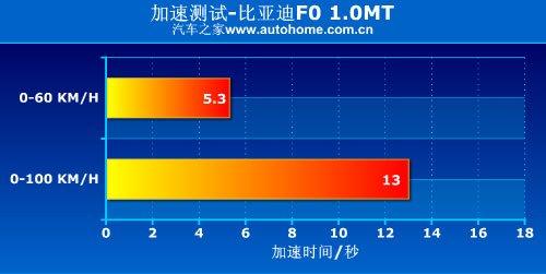 比亞迪F0搭載的是排量為1.0L的3缸全鋁發(fā)動機,最大功率為68馬力,最大扭矩90牛米,在國內(nèi)同級別的車型中,它的動力性是比較出色的,0-100Km/h加速只用了13秒,在微型車中算是比較不錯的成績了,但表現(xiàn)不佳的剎車成績讓人缺乏安全感。關(guān)于它詳細(xì)的測試,可以參考下面的文章: