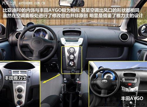 比亞迪F0是目前非常受歡迎的微型車之一,可愛靚麗的造型尤其吸引年輕人的目光,在整個微型車領(lǐng)域中的銷量也是名列前茅,當(dāng)然這與它親民的售價也是分不開的,然而它俊俏的外表和可愛的內(nèi)飾卻與豐田旗下的兩款車有著極度的相似。