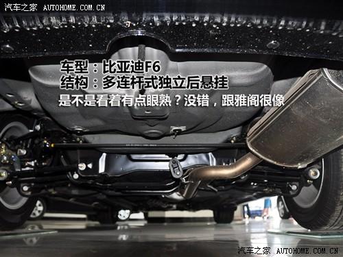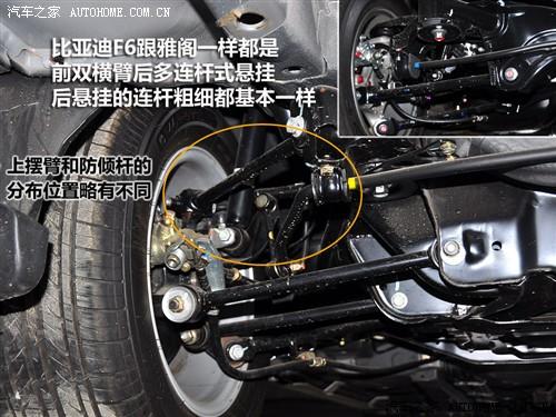 比亞迪F6的模仿并沒有僅僅停留在表面工作上,前雙橫臂后多連桿的懸掛形式也是從本田雅閣上借鑒過來的,后懸掛連桿的粗細(xì)程度都與原型車上的基本一樣,其實(shí)這也不是壞事,借鑒國(guó)外成熟的底盤設(shè)計(jì)也是加快進(jìn)步的途徑之一。