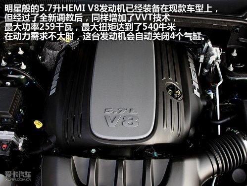 明星般的5.7升HEMI V8發(fā)動機已經(jīng)裝備在現(xiàn)款車型上,但經(jīng)過了全新調(diào)教后,同樣增加了VVT技術(shù),最大功率259千瓦,最大扭矩達到了540牛米,在動力需求不大時,這臺發(fā)動機會自動關(guān)閉4個氣缸,從一臺8缸發(fā)動機變?yōu)?缸發(fā)動機,從而節(jié)省更多的燃料。兩款5速自動變速器分別對應(yīng)兩臺強大的發(fā)動機。