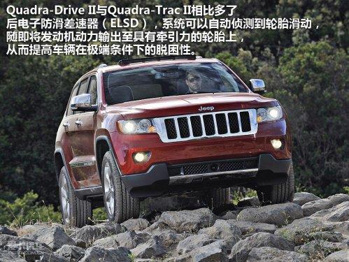 Jeep為新大切準(zhǔn)備了兩套不同的四驅(qū)系統(tǒng),升級(jí)后的Quadra-Trac II全時(shí)四驅(qū)系統(tǒng)在大部分時(shí)間中向所有車輪傳遞動(dòng)力,在系統(tǒng)檢測(cè)到某個(gè)車輪需要更多牽引力時(shí),通過接通離合器組,從而能將最多100%的動(dòng)力分配至前軸或者后軸。
