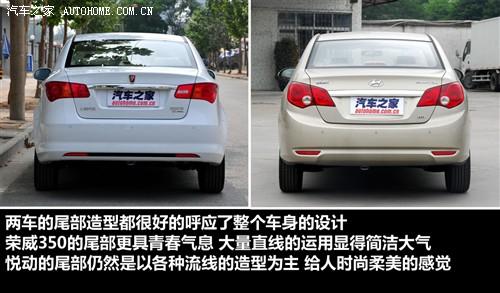 兩車的車尾都很好的延續(xù)了車身設(shè)計的整體性,350車尾的線條依然簡潔利索,甚至帶有一些轎跑的感覺,反觀悅動的車尾也延續(xù)了自己流暢柔美的特點,尾燈的形狀都和頭燈十分相似。從圖片來看兩車后備廂開口的高度也相差無幾。