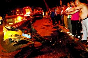 被撞的出租車受損嚴(yán)重。記者 吳江 攝