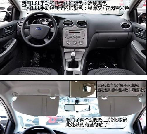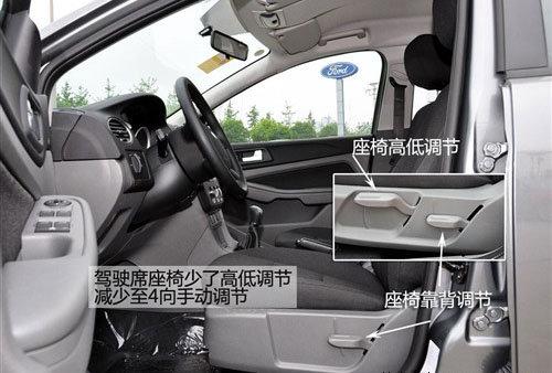 兩廂經(jīng)典型采用黑色內(nèi)飾,而三廂則采用上深下淺的顏色搭配。車內(nèi)最主要的簡(jiǎn)配有三項(xiàng),兩側(cè)遮陽(yáng)板上的化妝鏡被取消,這是比較影響日常使用的。駕駛席座椅減掉了高度調(diào)節(jié)功能,變?yōu)?向手動(dòng)調(diào)節(jié)。安全配置上前排側(cè)氣囊被取消,只剩下主副駕駛正面的兩個(gè)氣囊。