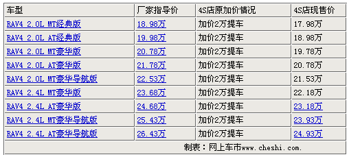 RAV4自去年4月份上市以來,憑借超高的性價比得到眾多SUV車友的喜愛,豐田RAV4是定位在一款城市SUV,它配置了主動扭矩分配控制四輪驅(qū)動系統(tǒng),同時兼?zhèn)湓诔鞘械缆泛驮揭奥范蔚膬?yōu)異行駛性能。據(jù)網(wǎng)上價格監(jiān)測系統(tǒng)顯示:豐田RAV4豪華升級版現(xiàn)已到店銷售,RAV4最高優(yōu)惠達到了15000元,最低僅售17.98萬,具體詳情請見下表: