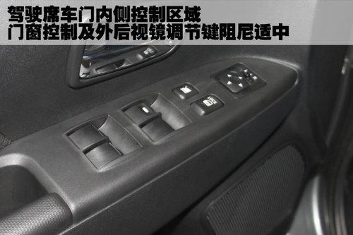 三菱ASX勁炫的駕駛席車門內(nèi)側(cè)設(shè)計了控制區(qū),可以控制車窗和外后視鏡,使用時發(fā)現(xiàn)門窗控制按鍵的阻力比較合適沒有松垮或者生硬的感覺,但外后視鏡調(diào)節(jié)按鈕有些偏小,不易于操作。