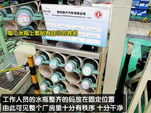 最后說一下,在工廠的角落里整齊碼放著員工自己的水瓶,從上圖我們可以很清楚的看出十分整齊,十分干凈。由此可見鄭州日產(chǎn)的整個廠房里是相當整潔的。