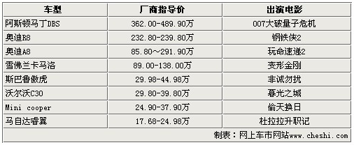 以上8款電影用車都是我們比較熟悉的,從溫馨的愛情片,到緊張的動作片,甚至是虛無縹緲的科幻片,都有它們的參與。汽車已經(jīng)不僅僅是我們生活中的交通工具了,很多時候,我們可以通過電影來表現(xiàn)出它們的生命,并且已經(jīng)逐漸成為我們生活中的重要組成部分。