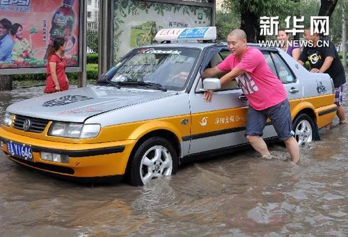 7月28日,一輛出租車(chē)在暴雨后的長(zhǎng)春街頭熄火。受近日連續(xù)強(qiáng)降雨的影響,吉林省內(nèi)多個(gè)水庫(kù)、河流、湖泊水位猛漲,接近或超過(guò)警戒水位。在長(zhǎng)春市以及延邊、白城等城市市區(qū)內(nèi)一些地段出現(xiàn)較嚴(yán)重的內(nèi)澇。新華社記者李鳳雙攝