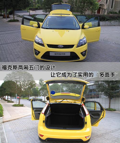 說完了駕駛感受,下面我們來看下2011款?怂2.0L運動型拉風(fēng)的外形。新車型與老款車型相比并無明顯變化,此次試駕的是一輛顏色非常耀眼的“奔騰黃”也是整個福克斯車系中最亮麗的顏色,這種顏色是兩廂運動版專屬的顏色。