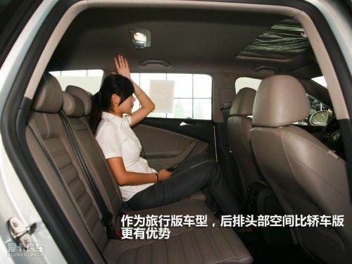 由于車頂曲線在到達C柱時不需要快速的下滑,旅行車后排頭部空間往往較轎車版本更有優(yōu)勢。從圖中可以看出模特MM坐在后排,其頭部空間可以稱之為奢侈。而PASSAT旅行版與國產(chǎn)邁騰一樣,都未對軸距進行加長,所以腿部空間并無太突出表現(xiàn),但對于模特MM而言已完全足夠。