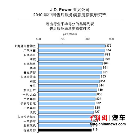 2010年中國售后服務(wù)滿意度指數(shù)研究的主要評(píng)價(jià)因子包括服務(wù)質(zhì)量、服務(wù)后交車、服務(wù)啟動(dòng)、服務(wù)顧問以及服務(wù)設(shè)施等五項(xiàng)因子,以測評(píng)車主在購車的12至24個(gè)月期間,對(duì)品牌售后服務(wù)部門所提供保養(yǎng)和維修服務(wù)的滿意度進(jìn)行評(píng)價(jià)。在此次研究中,廣汽本田以874分的總分(總分1000分)榮獲第二,僅以一分之差與冠軍失之交臂,但同比2009年結(jié)果(870分),分?jǐn)?shù)有進(jìn)一步的提升。