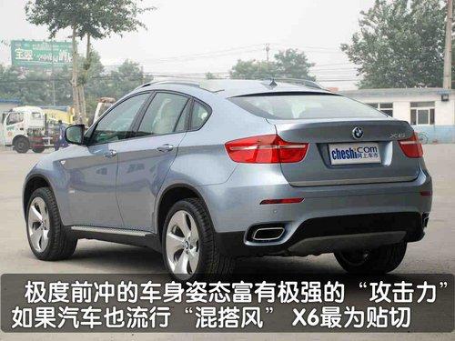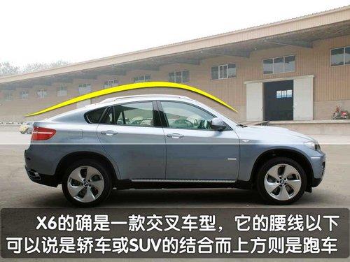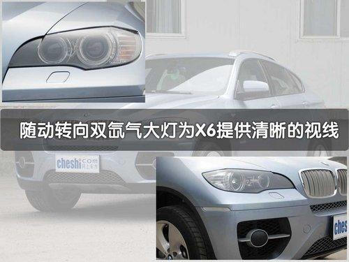 透過寶馬X6的正面造型,可以清楚的看到它身上所具備的寶馬基因。而在側面位置可以將寶馬X6分為上下兩層看待,上半部分儼然是動感十足的跑車造型,而下半部分則是經典的寶馬SAV車型。此外,雙腎形散熱格柵造型與寶馬其它車型統一,在正面視覺效果上X6與它的同門師兄X5倒是頗有些相像。