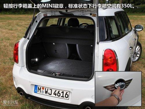 既然廠方說Countryman是最實用的MINI,那么行李箱空間肯定會成為用戶仔細考量的一處。輕按行李箱蓋上的MINI徽章,標(biāo)準(zhǔn)狀態(tài)下行李箱空間有350L,通過放倒座椅可擴容至1170L,在行李箱底部還有一個隱藏的儲物格。怎么樣,夠用了吧!