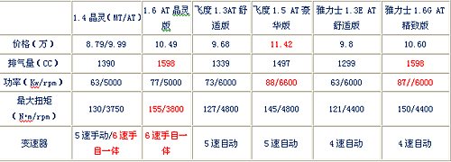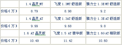 上表列出了晶靈版晶銳、飛度和雅力士三款車型的售價,從中我們可以發(fā)現(xiàn):首先,在手動車型方面,晶靈版1.4MT車型的售價僅為8.79萬,比雅力士和飛度都要低;其次,晶靈版晶銳1.4AT在價格上看似要比競品的1.3L AT車型稍高,但考慮到晶銳采用的是Tiptronic6擋手自一體變速箱,而飛度和雅力士都是四檔自動,落后不止一點,加上晶銳的配置要豐富很多,這點在后文會有詳細介紹,綜合來看晶銳1.4AT晶靈版的性價比優(yōu)勢還是相當突出的。另外,晶銳1.6L AT晶靈版,無論是品質(zhì)上,還是配置上都擁有同級競品車型所無可比擬的優(yōu)勢,而其價格卻要大大低于這些競品。