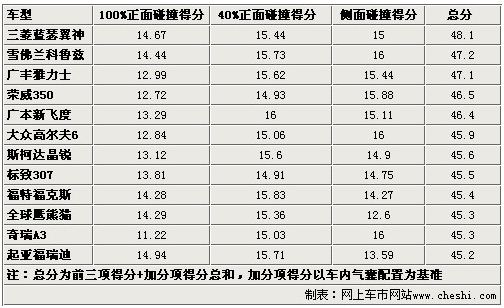 通過以上表格,我們可以看出這樣一個現(xiàn)象,12款車當(dāng)中涉及自主品牌、日韓系列和德美系列各國車型。很多人一直堅信德美系的車要比其他兩類車要結(jié)實,但事實證明他們的成績也并非那么無懈可擊。看來C-NCAP的鐵證也可以做一回流言終結(jié)者了,不過這12款車全部達到了45分以上,也就是C=NCAP五星級安全標(biāo)準(zhǔn)。至于傳說中的五星半級別,在比較常見的國產(chǎn)車中只有雅閣和CR-V達到。