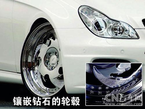 20寸的鍍鉻輪轂是此車的一大亮點,風(fēng)火輪形狀很吸引眼球,動感至極,寬邊的樣式讓人很容易聯(lián)想到美國黑人玩兒的“VIP范兒”。并且在每條幅邊上都鑲嵌有數(shù)不清的鉆石,四個輪轂上鉆石的價格就已經(jīng)非常可觀了,就是不知道在輪轂告訴轉(zhuǎn)動時,鉆石會不會脫落。