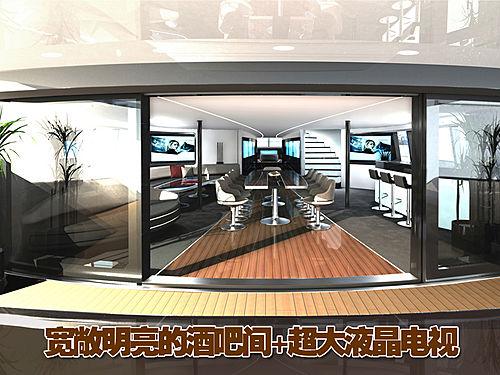 從官方設(shè)計(jì)圖上我們可以看到起奢華的內(nèi)部裝飾,液晶顯示屏的操控界面,寬大舒適的駕駛艙座椅,在其船艙還配置了寬敞的酒吧間,木質(zhì)的地板以及灰色的裝飾增添了雅致的風(fēng)格。此外還有舒適的長沙發(fā)以及小型會(huì)議桌等等。