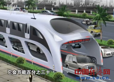 這家公司宣稱,“3D立體交通快線”實際上一種軌道交通系統(tǒng),只不過它的軌道埋在地面以下,而其乘客艙則距離地面有兩米之高,任何高度低于2米的小型車輛可以在下面自由穿行。與傳統(tǒng)城市公交車相比,這種軌道交通系統(tǒng)能夠節(jié)能30%以上。