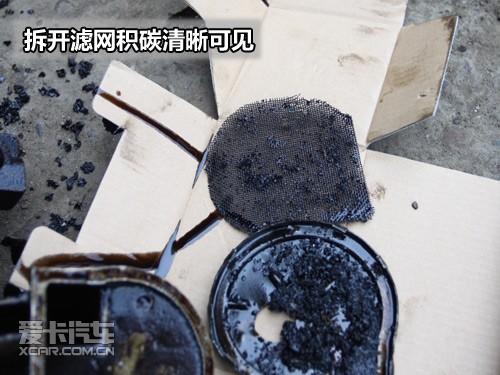 機油泵濾網很容易被積碳堵塞,濾網堵塞后能造成機油壓力低導致故障燈亮。而由下圖可見機油泵濾網上已經被積碳被蓋,雖然這些積碳很容易手工清除,但還要進行拆解處理。