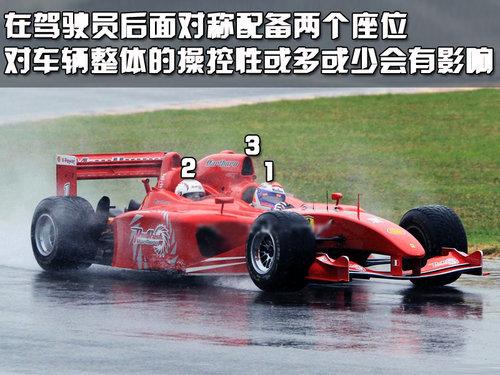 這款F1賽車采用了三座式設(shè)計(jì),駕駛員的位置沒有變化,只是在駕駛員后面左右各安放了一個(gè)座位。坐在后面的乘客可以近距離感受F1賽車所帶來的極限駕駛樂趣,更可以清晰的看到F1賽車儀表盤上各項(xiàng)數(shù)據(jù)的狀況。
