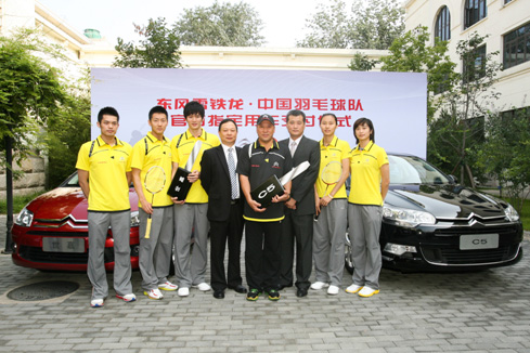 東風(fēng)雪鐵龍副總經(jīng)理魏文清為中國羽毛球隊交付“榮耀座駕”C5和“冠軍座駕”世嘉