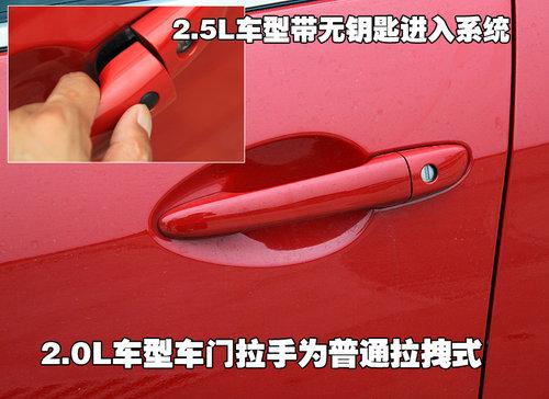 與車身同色的車外門把手開啟車門時(shí)力度適中,周圍與車門板金接縫均勻,開啟的過程中無松垮的感覺。不過這款車并沒有采用智能鑰匙系統(tǒng),消費(fèi)者要進(jìn)入愛車只能通過鑰匙開啟車門。