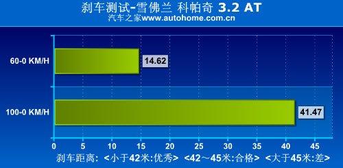 與相對(duì)不算特別出色的加速成績(jī)相比,科帕奇的剎車還是十分令人滿意的,在汽車之家的測(cè)試中,它只用了不到42米就將車輛從100Km/h穩(wěn)穩(wěn)停住,已經(jīng)達(dá)到優(yōu)秀的界定標(biāo)準(zhǔn)了,對(duì)于重心和底盤更高的SUV車型來說,能取得這樣的成績(jī)已經(jīng)很不錯(cuò)了。