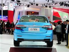 動力方面和C70EV相同,采用永磁同步電機(jī),峰值功率60kW,蓄電池系統(tǒng)采用磷酸鐵鋰鋰離子蓄電池,額定容量為75Ah,由于采用快換動力電池,更換動力蓄電池只需5min。而性能方面從靜止加速到100km/h需13.5s,最高車速160km/h,城市工況續(xù)駛里程為150km。