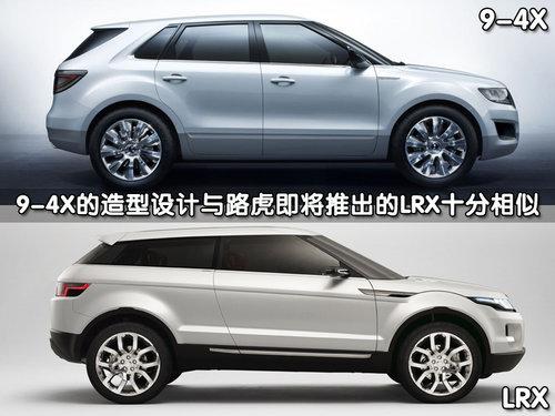 從側面看,薩博9-4X的造型與路虎即將推出的最低級別SUV-LRX十分相似。前寬后窄的車窗設計、車頂部線條以及尾部造型都很雷同。這兩款車上市之后,將會處于同一級別,這樣的設計,會讓消費者難以抉擇。
