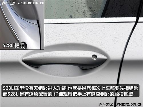 外觀上另一個細微的區(qū)別在車門的把手上,由于523Li車型并沒有配備無鑰匙入車功能,所以它的車門把手上也沒有相應的感應器,而我們在528Li車門的把手上則發(fā)現(xiàn)了由5條線組成的感應鑰匙觸摸區(qū)域。