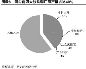 國(guó)內(nèi)前四大釹鐵硼廠商產(chǎn)量占比40%