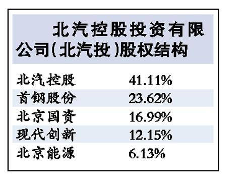 據(jù)昨天首鋼股份的投資公告,擬以其持有的北京汽車投資有限公司(下稱“北汽投”)全部股權(quán)及部分現(xiàn)金投資參與發(fā)起設(shè)立“北京汽車股份有限公司”(暫定名,下稱“北汽股份”),預(yù)計持股比例為18.31%。
