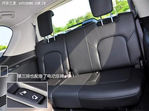 2011款英菲尼迪QX56的車身尺寸十分夸張,車長5290mm寬2030mm高1935mm,軸距達(dá)到3075mm,所以空間和舒適性絕對不是問題。即使是第二排乘客也擁有極高的乘坐感受,獨立空調(diào)、座椅通風(fēng)、中央扶手箱都是后排獨享的配置。