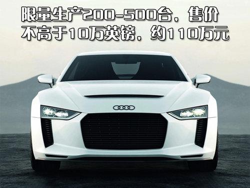 奧迪官方稱正與工程師團隊協(xié)作將Quattro概念車量產變?yōu)楝F實,需要做多處工程學上的改良設計。這款車先期會限量生產200至500輛,售價估計不會高于10萬英鎊,約合人民幣110萬,預計會引入國內市場銷售。