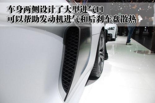 奧迪R8 GT與普通版R8在車身尺寸上并沒有變化,依然是一付短小精悍的風格。但奧迪R8 GT增加的那些運動套件卻使這款車更加強大。車身兩側(cè)最為顯眼的就是這個大型進氣口,可以幫助發(fā)動機進氣,并且由于主后剎車盤散熱。